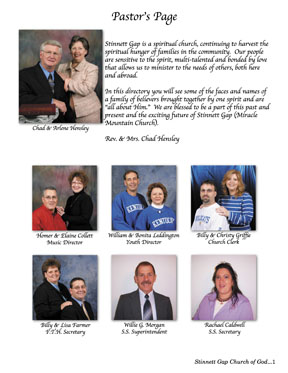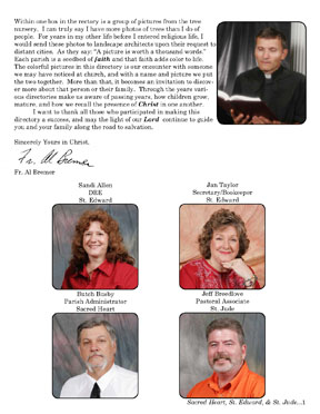 - Family Pages - portrait of each church family photographed, 16 or 9 per page