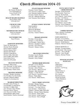 - Roster - list of church membership containing names, addresses, and phone numbers.